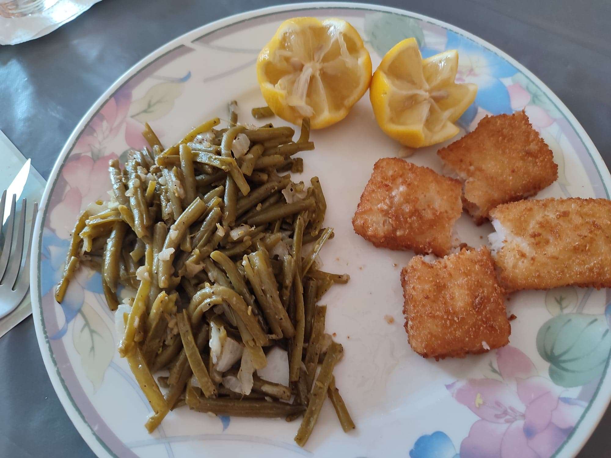 En accompagnement, des haricots verts passés à la cocotte avec une cébette hachée.